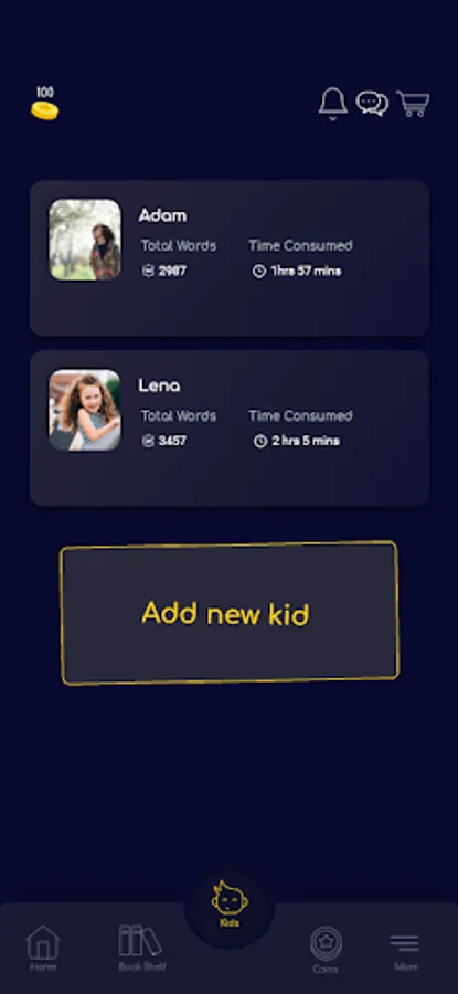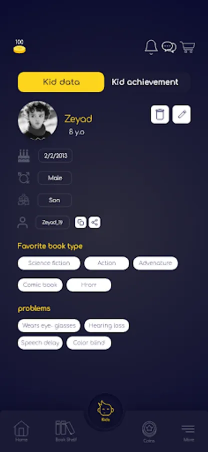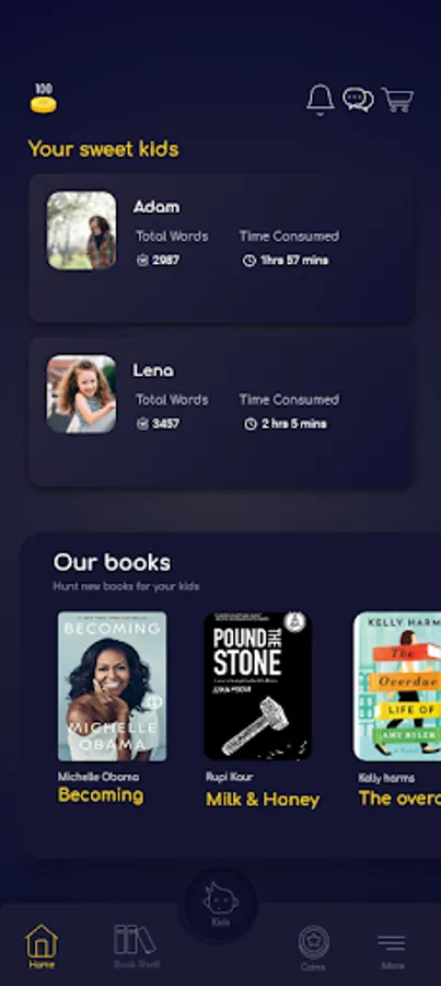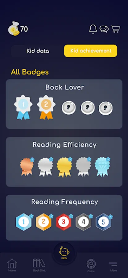 o View each of your kid's reading performance and achievements while using KIDSTAR app.