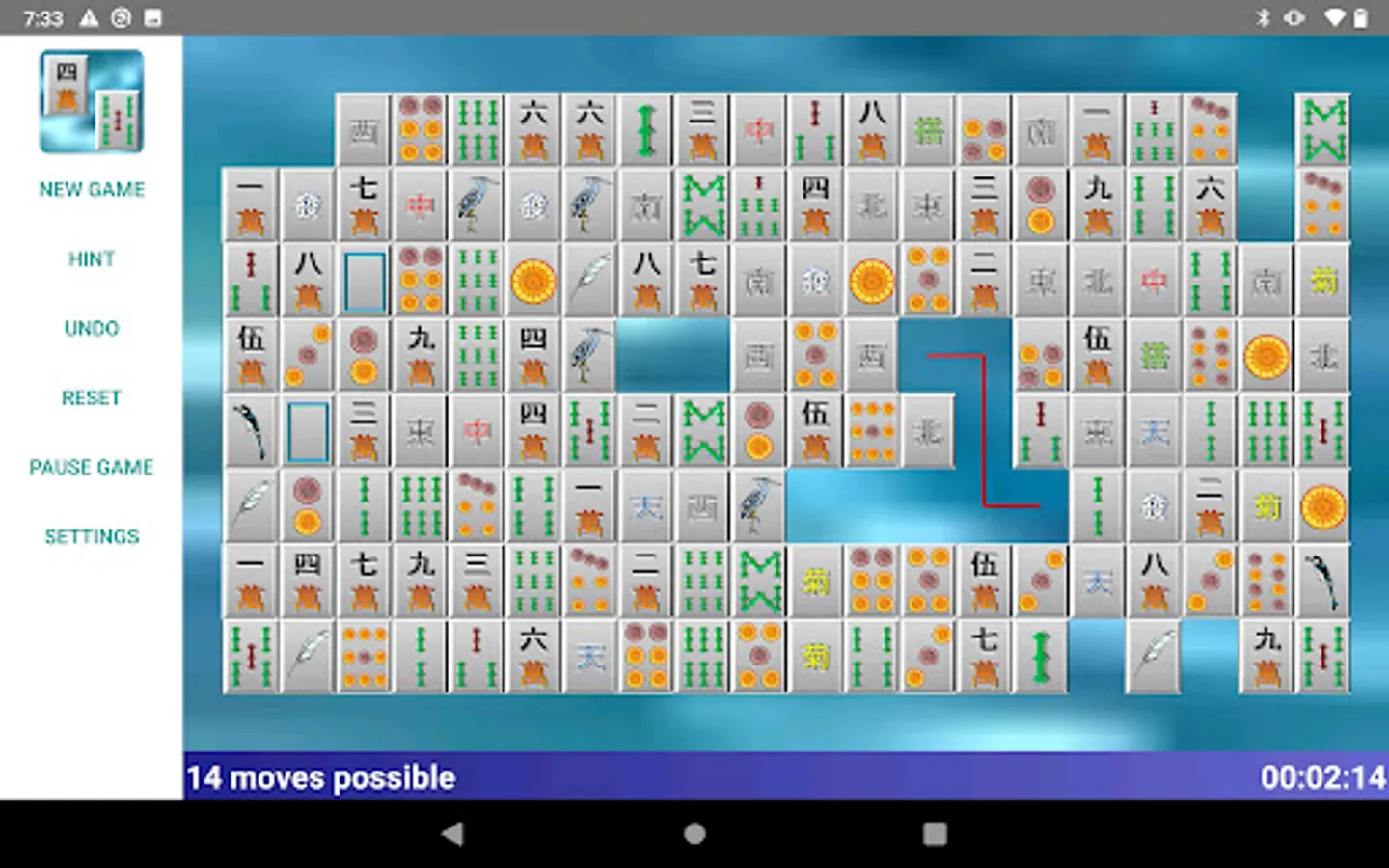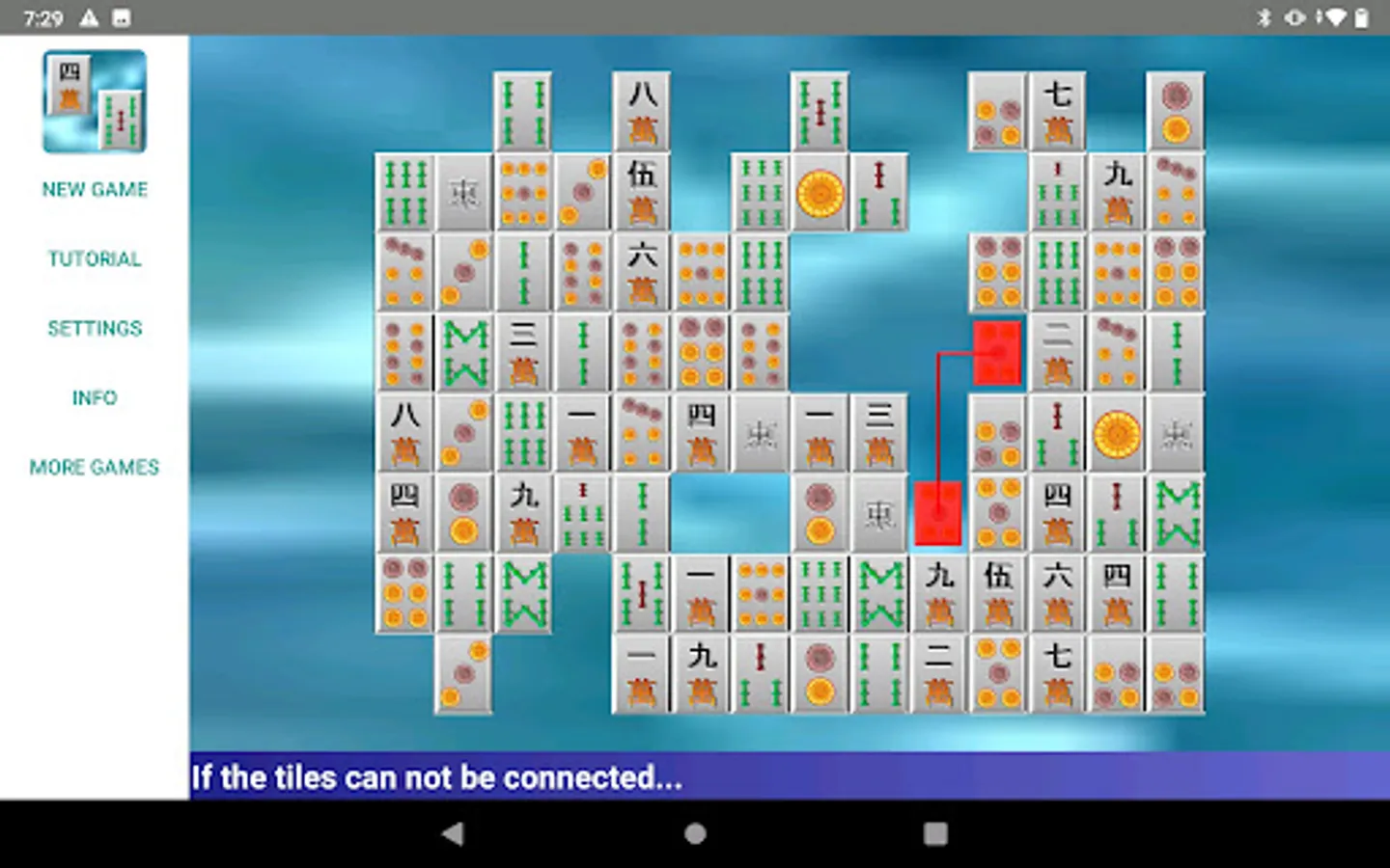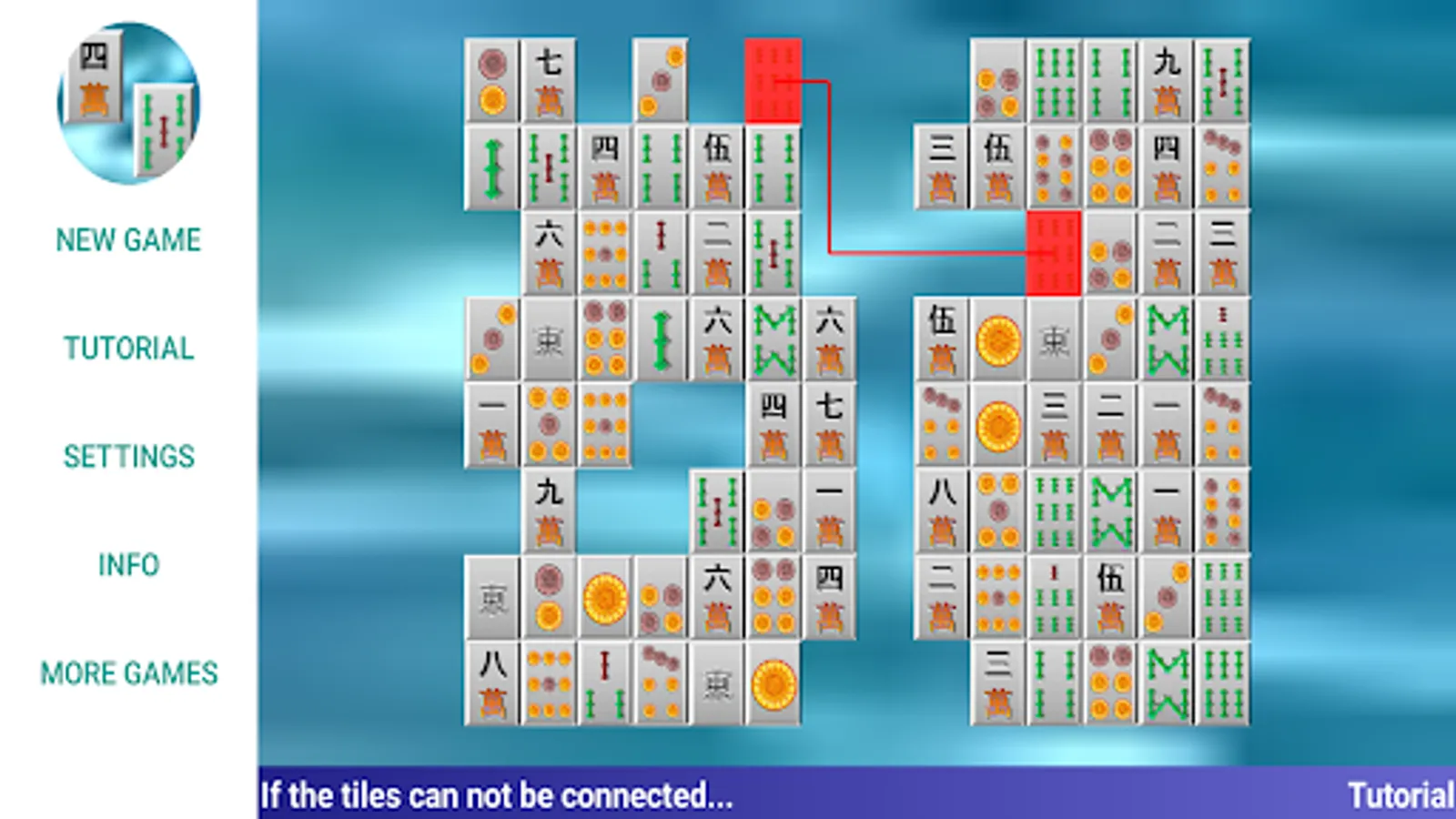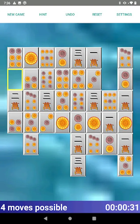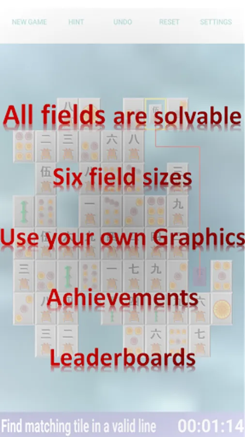 Shisen for Android! Like Mahjong? Then you'll love Shisen. The classical version of onet connect. Remove all tiles from the playfield. Tiles can be removed in matching pairs. You can only remove pairs when they can be connected in a line that has maximum 2 turns - and no other tile being on that line.