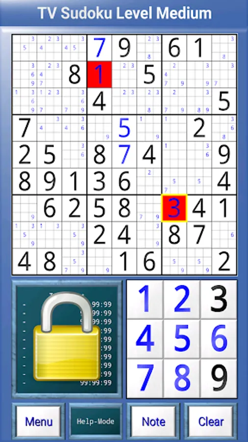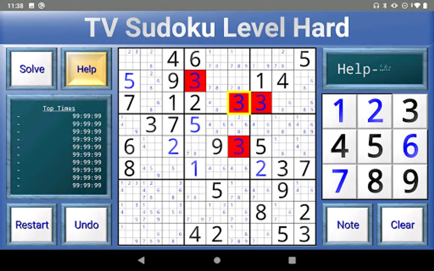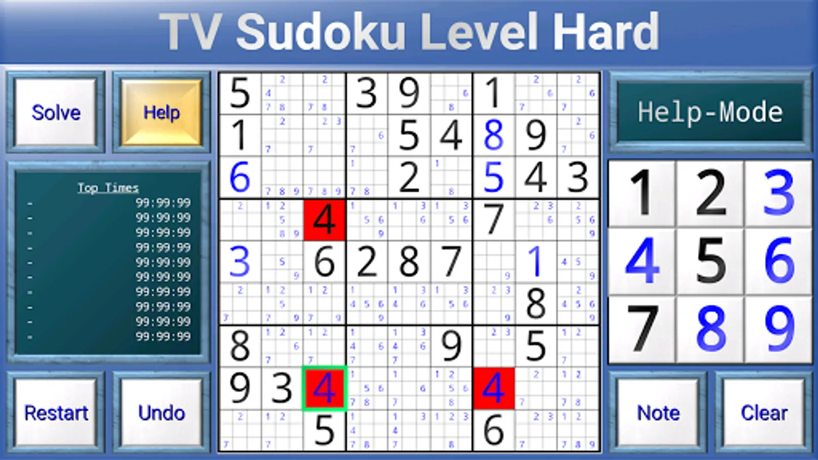 - 3 different help functions (auto pencil in / show wrong entries / show duplicate entries)