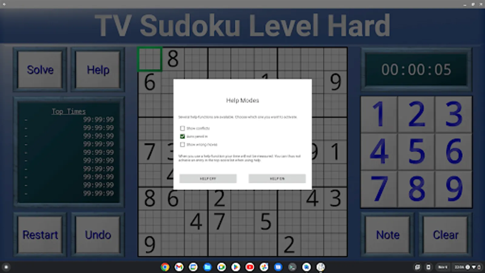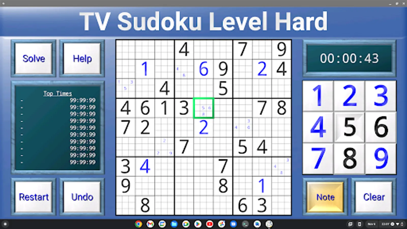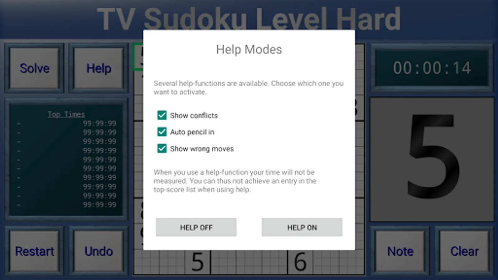 - 3 different help functions (auto pencil in / show wrong entries / show duplicate entries)