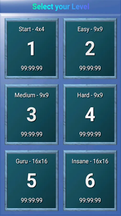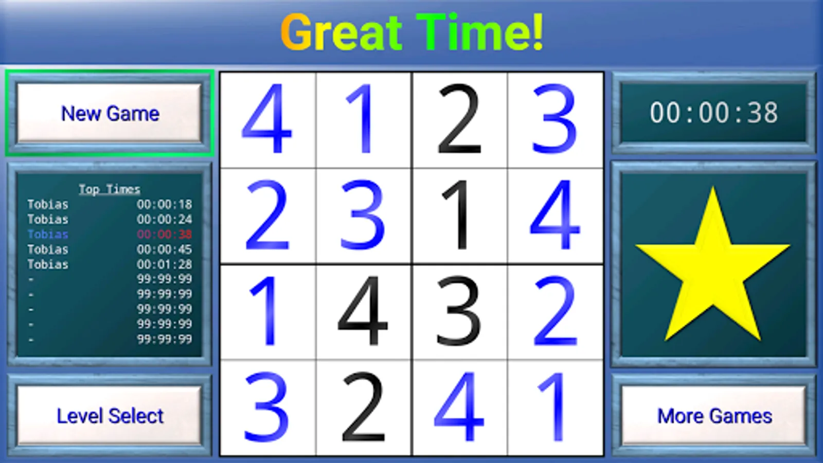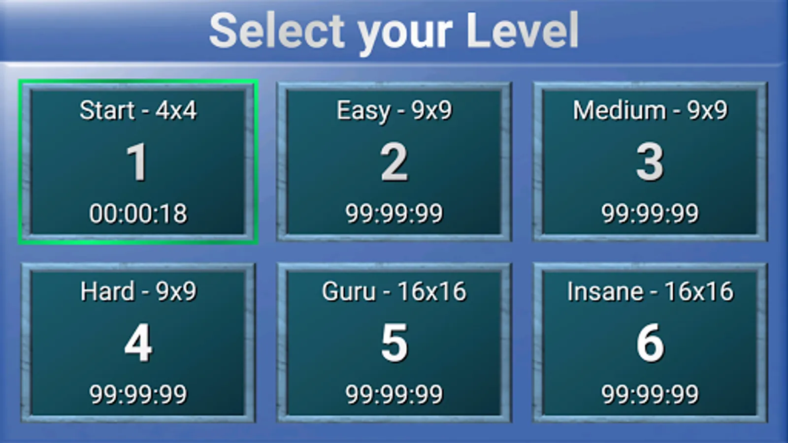 The game features Sudokus of the sizes 4x4, 9x9 and giant 16x16 in six different difficulty levels. The Sudokus are completely generated at random. The game gives you an unlimited number of Sudokus that are all generated from scratch, just for your entertainment.