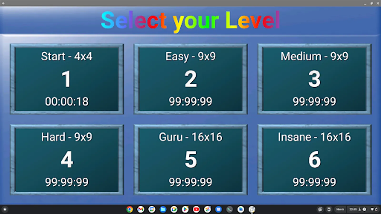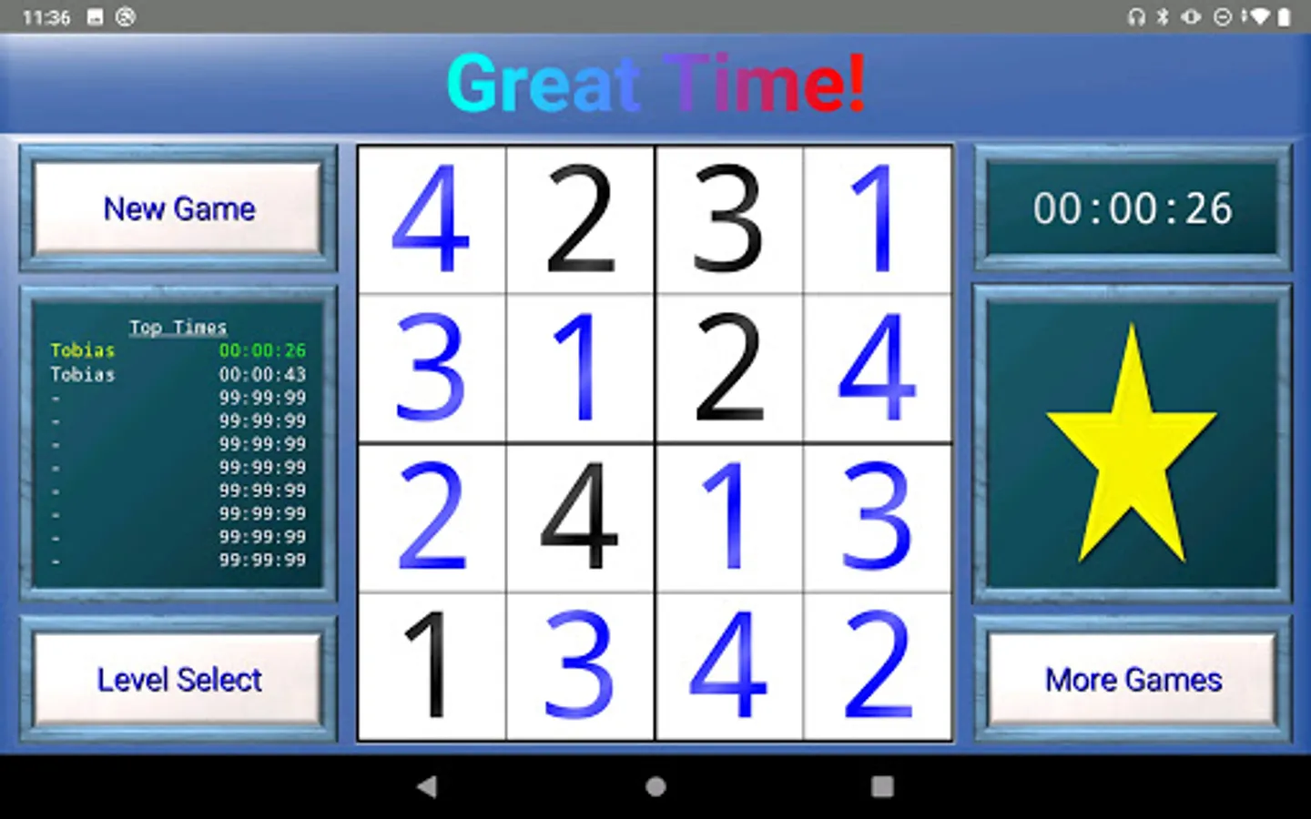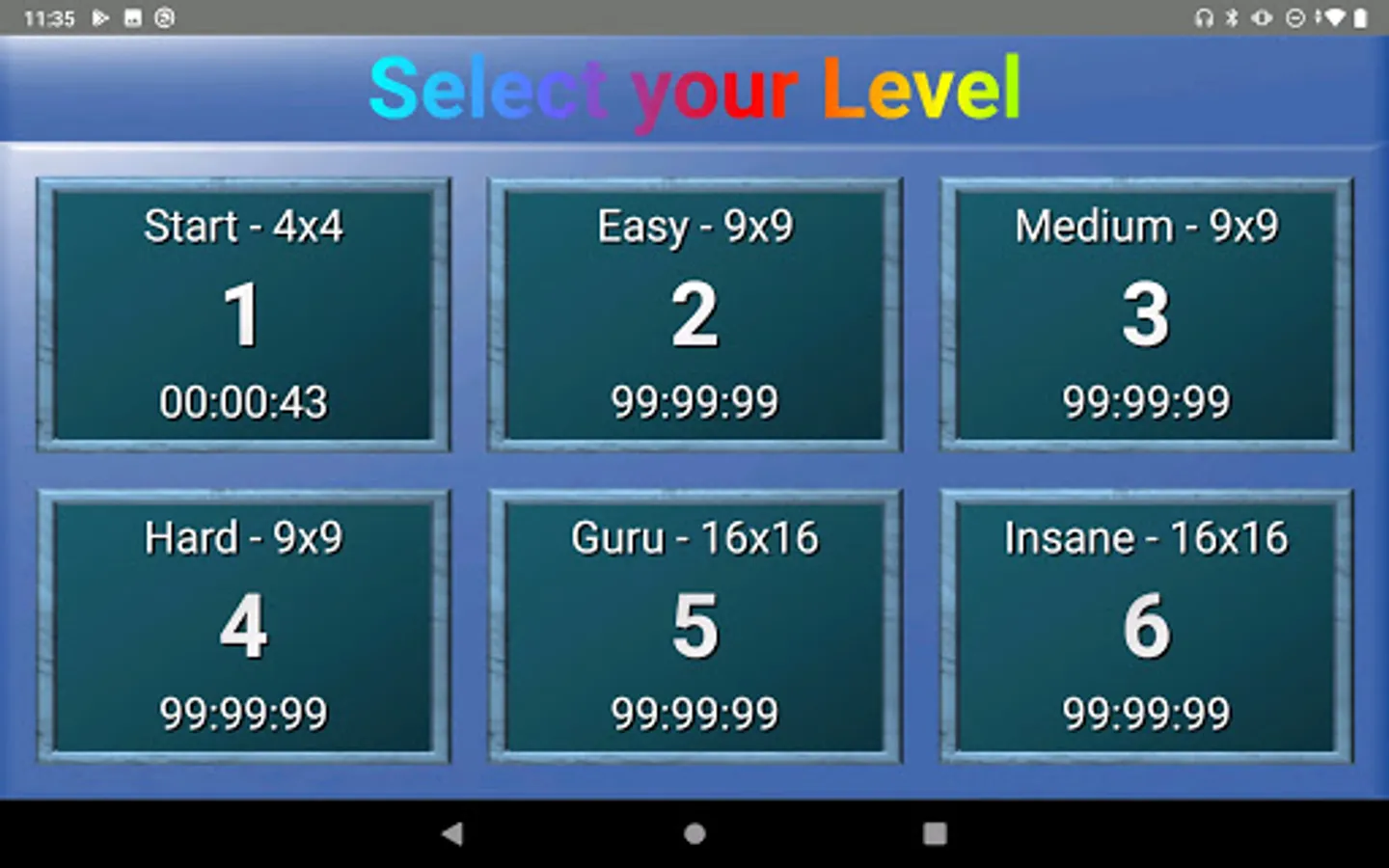 The game features Sudokus of the sizes 4x4, 9x9 and giant 16x16 in six different difficulty levels. The Sudokus are completely generated at random. The game gives you an unlimited number of Sudokus that are all generated from scratch, just for your entertainment.