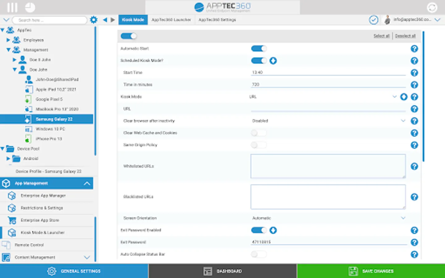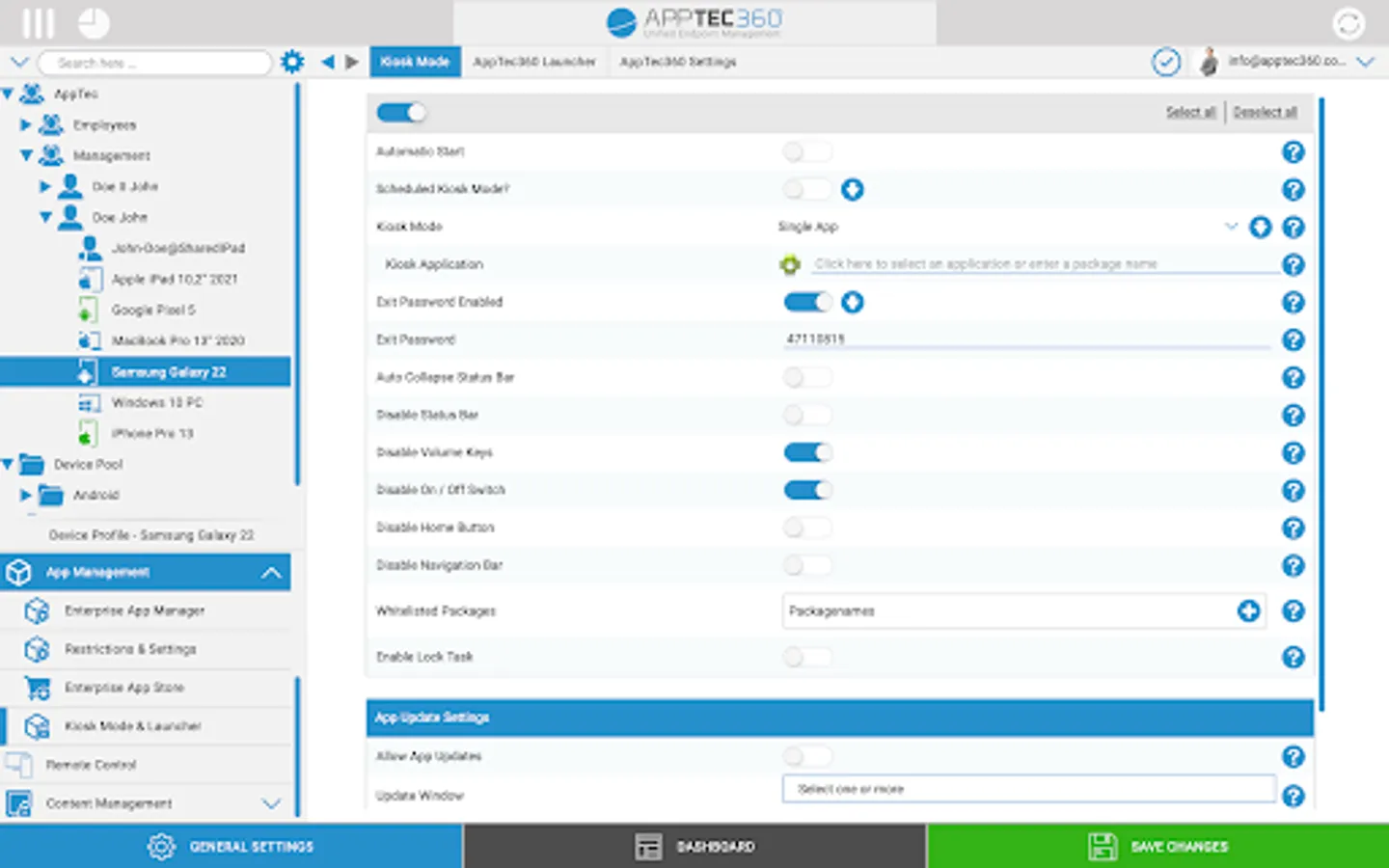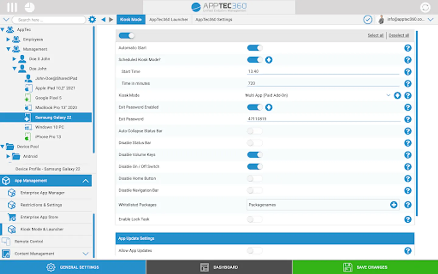 The AppTec MDM & Kiosk Mode App lets you secure, monitor, manage and support your entire fleet of Android devices deployed across your enterprise, when working in conjunction with the AppTec360 Endpoint Manager Console.