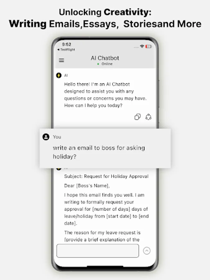 ChatBot Pro - Smart Assistant is an innovative Android app that allows you to have intelligent conversations with a virtual assistant. With the help of GPT one of the most advanced AI chat writing bots available, ChatBot Pro can understand your questions, provide helpful responses, and even offer solutions to your problems.