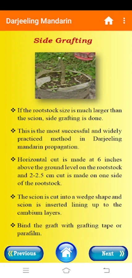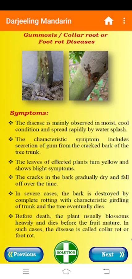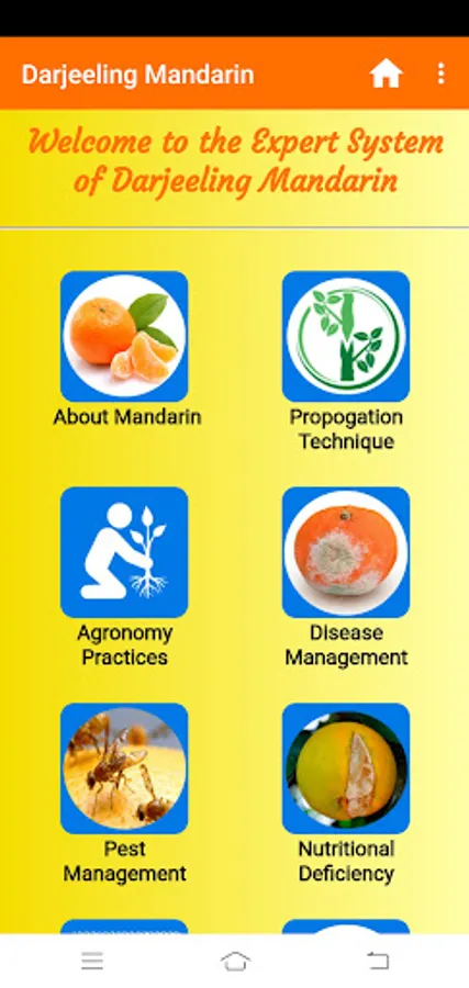 Mandarin Orange cultivator will get various agro-advisory services from different options like Propagation Techniques, Agronomy Practices, Disease Management, Pest Management, Nutritional Deficiency etc. The information is being provided with text, photographs and audio.