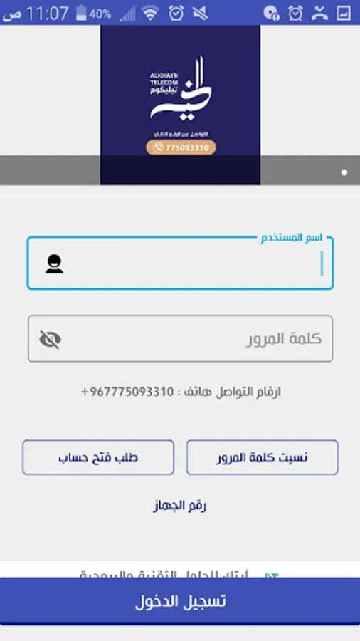 In the event that you are using the service for the first time on Android, you must first register for the service with Al-Khair Telecom and you will get a password of your own that you register however you like