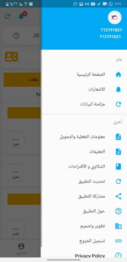 In the event that you are using the service for the first time on Android, you must first register for the service at Ibdaa Tech, and you will get your own password that you register as you like.