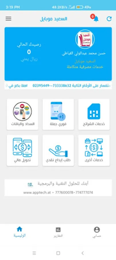 In the event that you are using the service for the first time on Android, you must first register for the service with Al-Saeed Mobile and you will get a password of your own that you register however you like