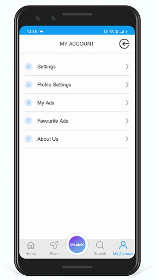 My Account: MsaleX provide user with different setting for the user to manage the application and section where user can see the ads listed by him over the application with the option to either edit or delete the ads listing from the application.