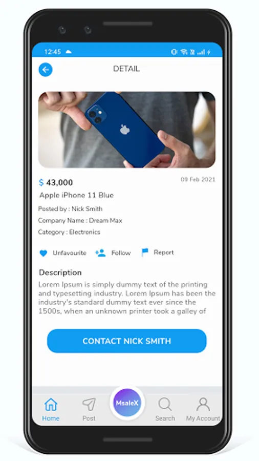 Post: MsaleX provide user with the simple 5 steps to post their ads over the application for their products which involves Adding Photo from Gallery or Camera Adding product/item Name Adding Product/item Description Adding Asking Price Add Multiple Product/item Image if any And Post it over the application which can be globally approached from the user of the application.