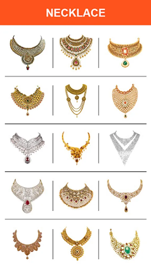 You don't need not to buy Expensive Jewelry items to try, just use Women Jewellery Photo Editor app to try different types of Gold and diamond jewelry items in this App.