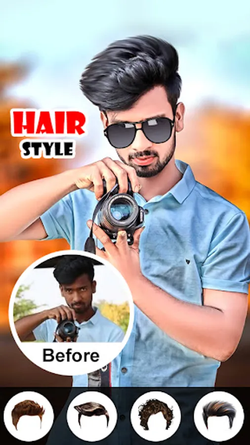 Man Hairstyles Photo Editor app is the FREE Man Hair changer app to create new boys Hairstyle on photos! You can change hairstyle or try new hairs on your photos. Best Men hairstyles stickers, fashion hair style stickers, short hair & long hair stickers and more Stickers for your perfect hair on photo! Simply add your face to the modern fashion look on photo with hairs and glasses and at the end apply beautiful filters.