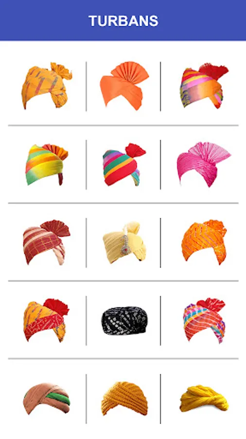 Rajasthani Turban Photo Editor app contains latest and new stylish Turbans in all category like, Punjabi turban, rajasthani turban, wedding turban, mustache, beard, goggles, tattoo, tie and stickers. it is specially for those who are regularly interested in stylish look. Feel like a Rajasthani man.