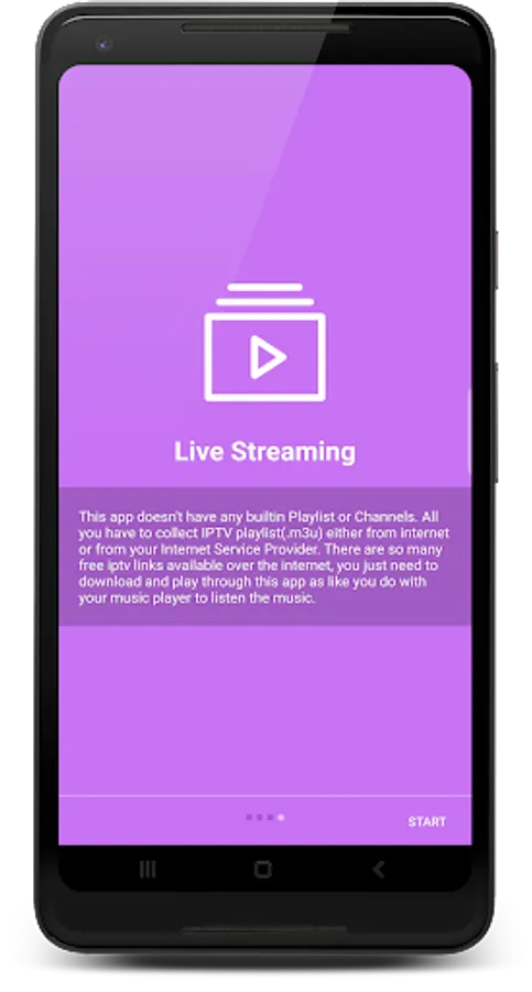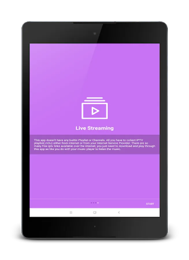 Please consider that this app doesn't contain any built-in livetv channels or medias or iptv playlists.