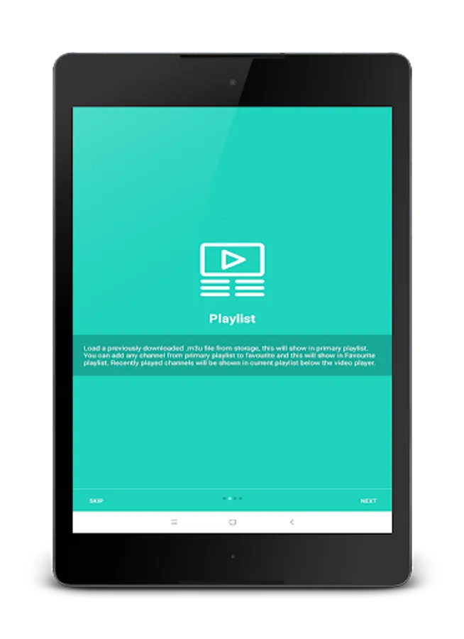 Integrated Player, M3U playlists support, Recent playlists support, Favourite list support, Customization of playlist information, Playlist history, Support in different size screen,
