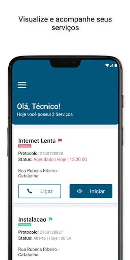 Technician application to view data and perform actions such as: