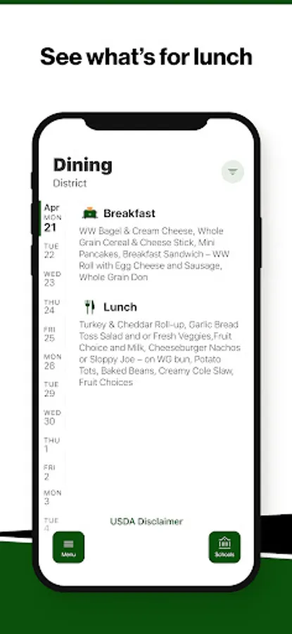 Within the dining section, you’ll find an easy to navigate, weekly menu, sorted by day and meal type.