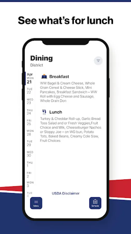 Within the dining section, you’ll find an easy to navigate, weekly menu, sorted by day and meal type.
