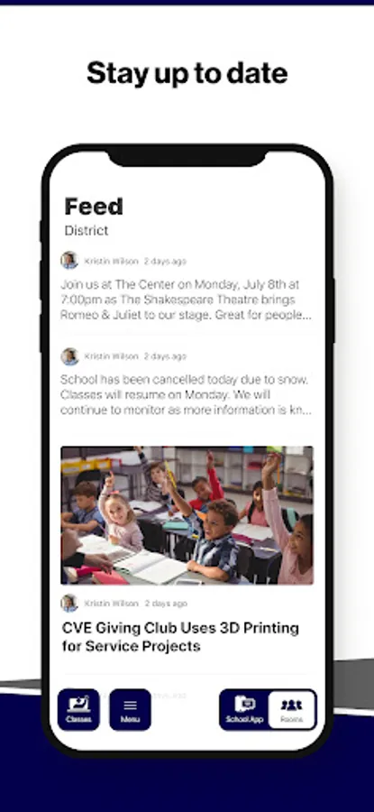 In the Live Feed is where you'll find updates from the administration about what's going on in the district right now. Whether that's celebrating a student's success, or reminding you about an upcoming deadline.