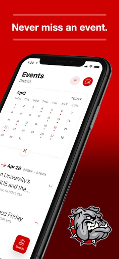 The event section shows a list of events througahout the district. Users can add an event to your calendar to share the event with friends and family with one tap.