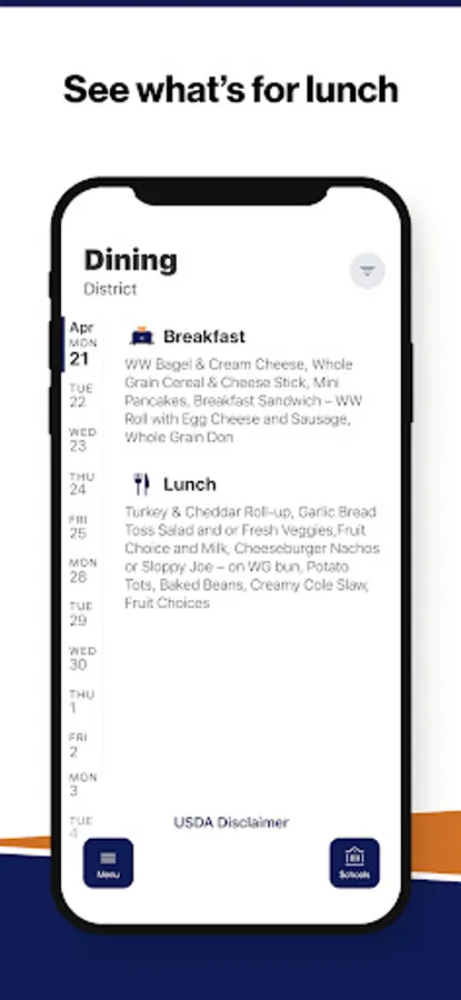 Within the dining section, you’ll find an easy to navigate, weekly menu, sorted by day and meal type.