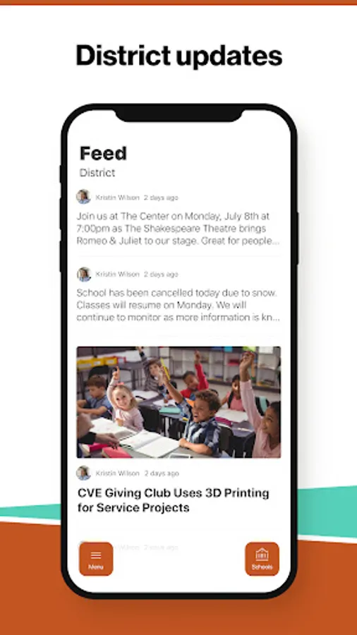 In the Live Feed is where you'll find updates from the administration about what's going on in the district right now. Whether that's celebrating a student's success, or reminding you about an upcoming deadline.