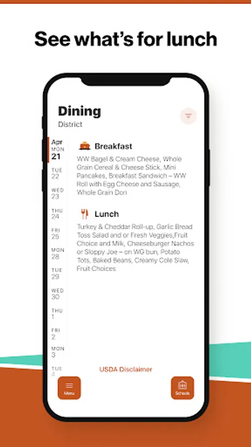 Within the dining section, you'll find an easy to navigate, weekly menu, sorted by day and meal type.