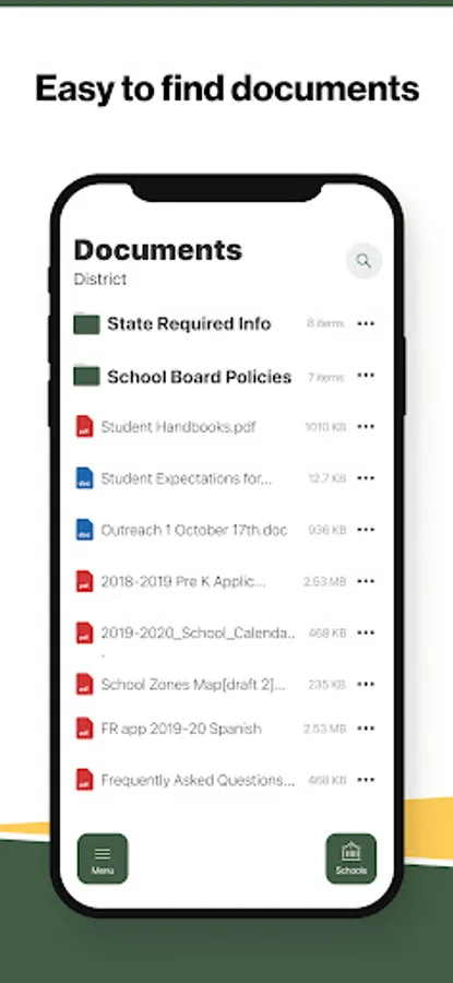 The event section shows a list of events throughout the district. Users can add an event to their calendar to share the event with friends and family with one tap.