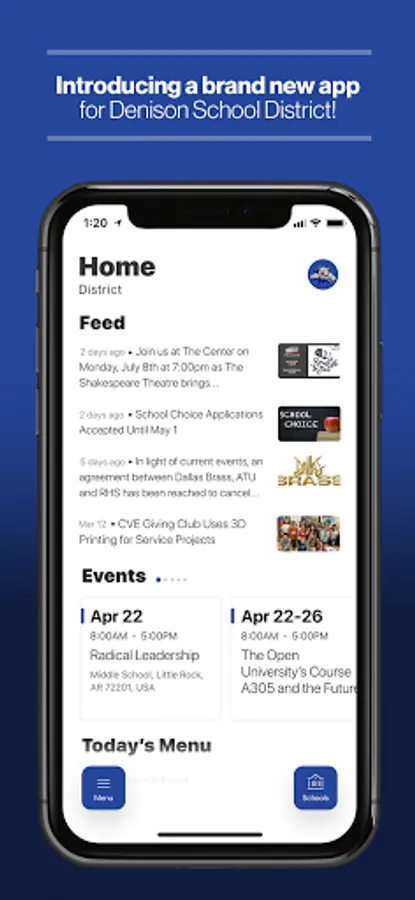 The event section shows a list of events throughout the district. Users can add an event to your calendar to share the event with friends and family with one tap.