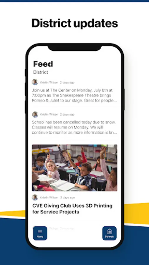 In the Live Feed is where you'll find updates from the administration about what's going on in the district right now. Whether that's celebrating a student's success, or reminding you about an upcoming deadline.