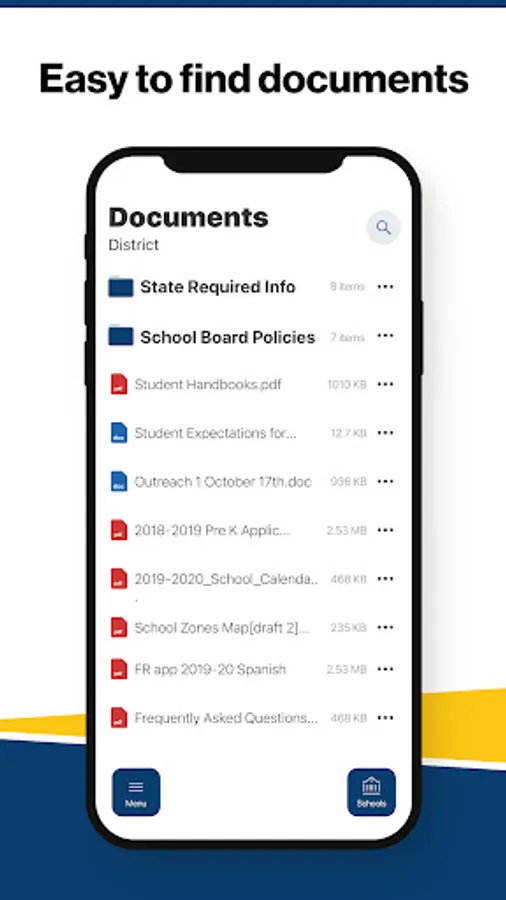 The event section shows a list of events throughout the district. Users can add an event to their calendar to share the event with friends and family with one tap.
