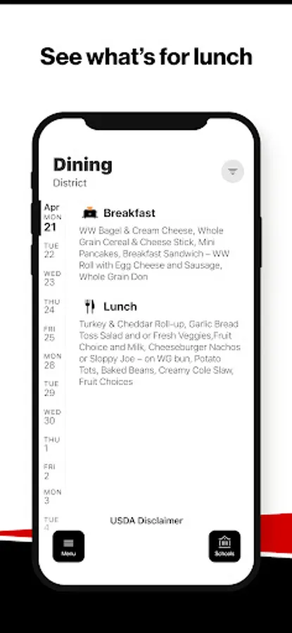 Within the dining section, you’ll find an easy to navigate, weekly menu, sorted by day and meal type.