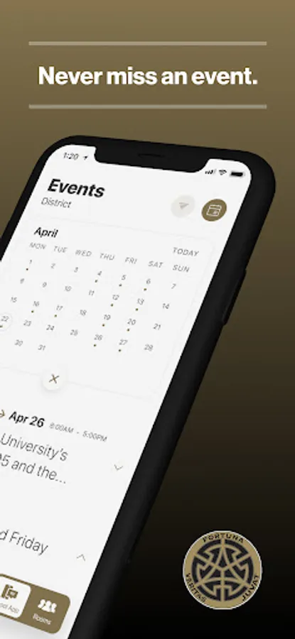 The event section shows a list of events throughout the district. Users can add an event to their calendar to share the event with friends and family with one tap.