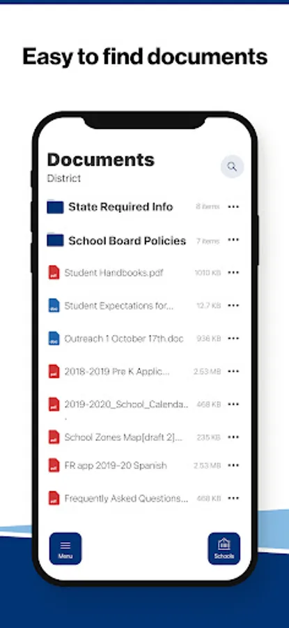 The event section shows a list of events throughout the district. Users can add an event to their calendar to share the event with friends and family with one tap.