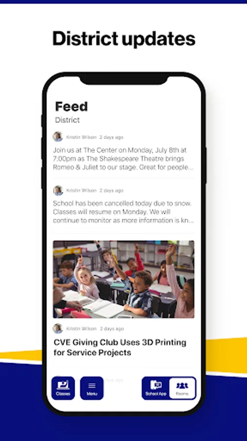 In the Live Feed is where you’ll find updates from the administration about what’s going on in the district right now. Whether that’s celebrating a student’s success, or reminding you about an upcoming deadline.