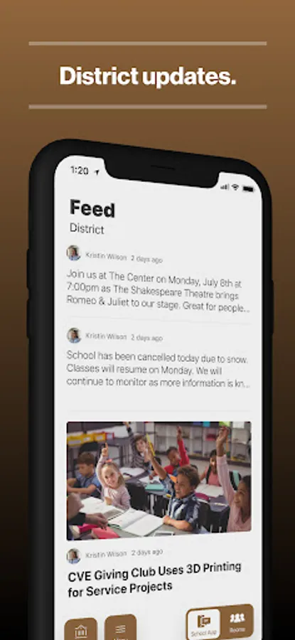 In the Live Feed is where you'll find updates from the administration about what's going on in the district right now. Whether that's celebrating a student's success, or reminding you about an upcoming deadline.