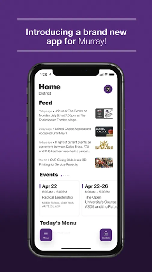 The event section shows a list of events throughout the district. Users can add an event to your calendar to share the event with friends and family with one tap.