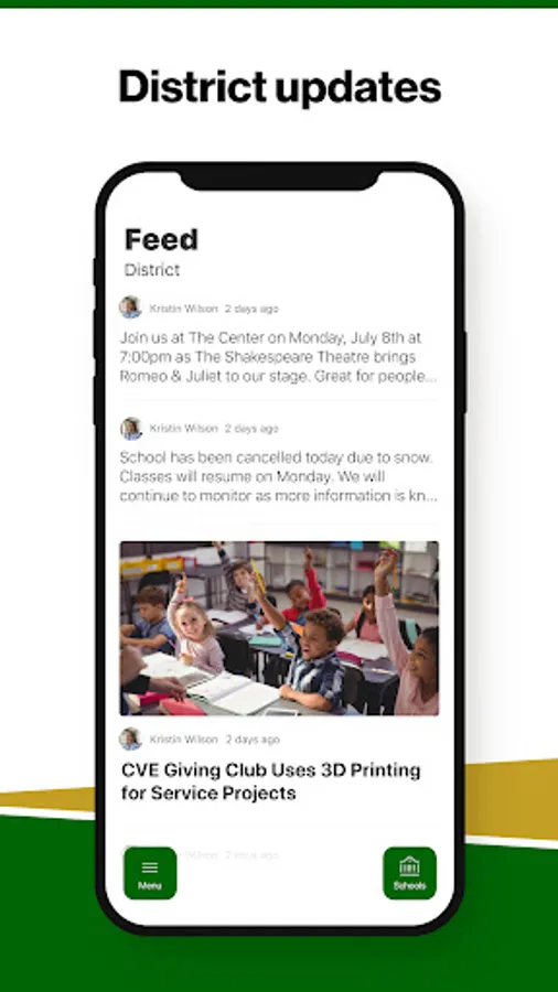 In the Live Feed is where you'll find updates from the administration about what's going on in the district right now. Whether that's celebrating a student's success, or reminding you about an upcoming deadline.