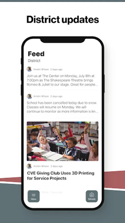 In the Live Feed is where you'll find updates from the administration about what's going on in the district right now. Whether that's celebrating a student's success, or reminding you about an upcoming deadline.