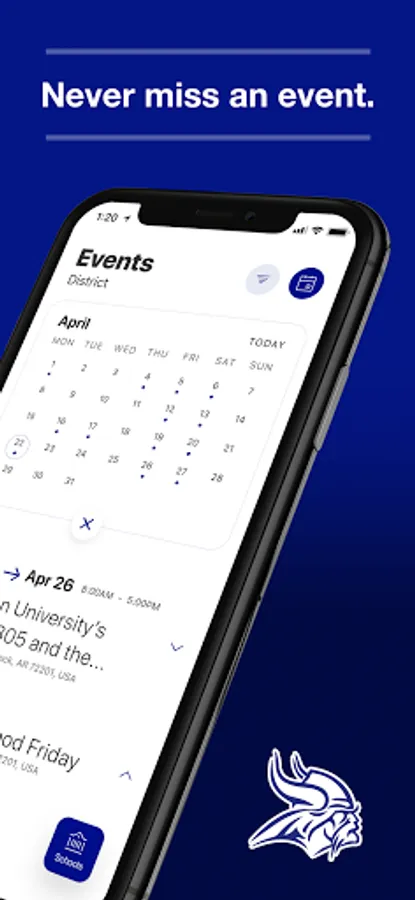 The event section shows a list of events throughout the district. Users can add an event to your calendar to share the event with friends and family with one tap.