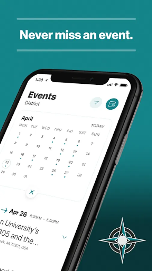 The event section shows a list of events throughout the district. Users can add an event to their calendar to share the event with friends and family with one tap.