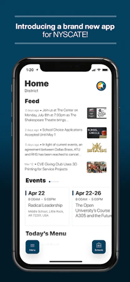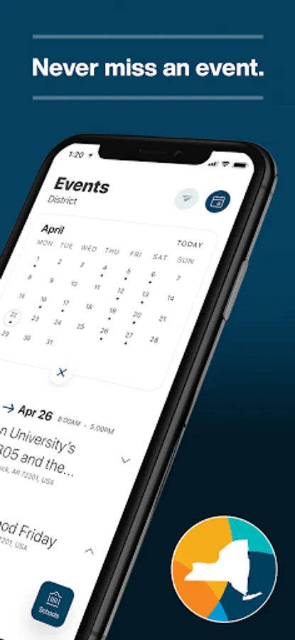 The event section shows a list of events throughout the district. Users can add an event to your calendar to share the event with friends and family with one tap.