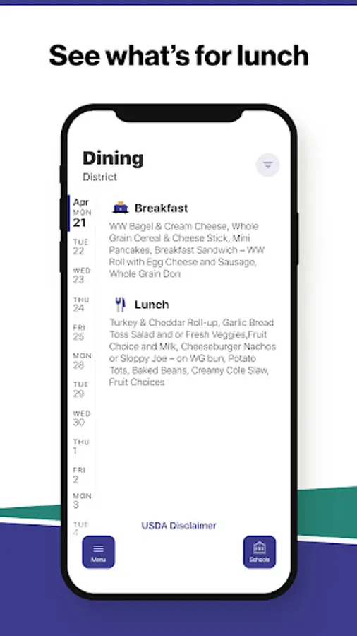 Within the dining section, you’ll find an easy to navigate, weekly menu, sorted by day and meal type.