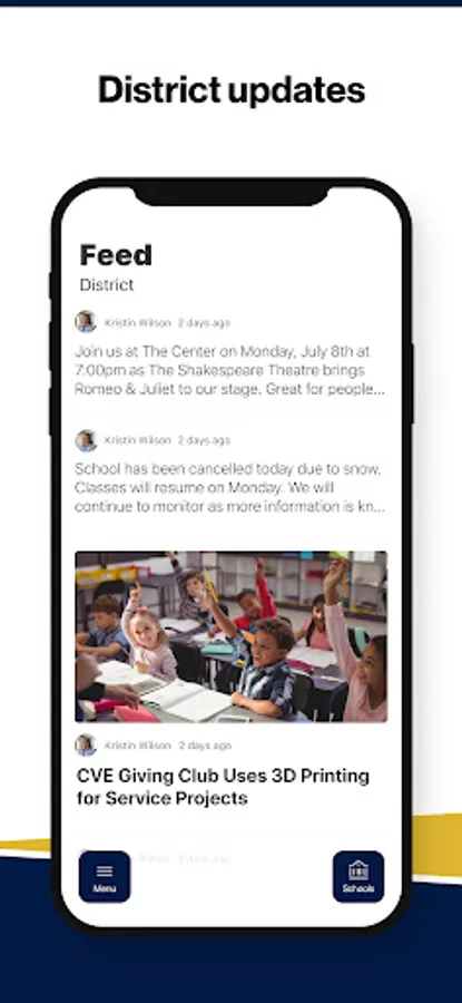 In the Live Feed is where you'll find updates from the administration about what's going on in the district right now. Whether that's celebrating a student's success, or reminding you about an upcoming deadline.