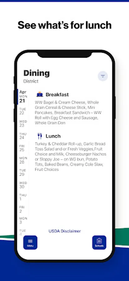 Within the dining section, you’ll find an easy to navigate, weekly menu, sorted by day and meal type.