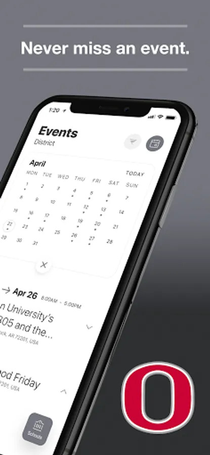The event section shows a list of events throughout the district. Users can add an event to your calendar to share the event with friends and family with one tap.