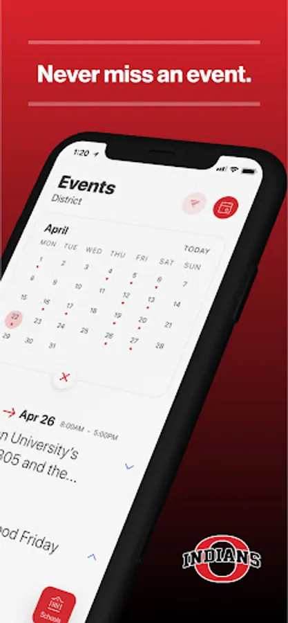 The event section shows a list of events throughout the district. Users can add an event to your calendar to share the event with friends and family with one tap.