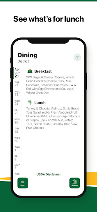 Within the dining section, you’ll find an easy to navigate, weekly menu, sorted by day and meal type.