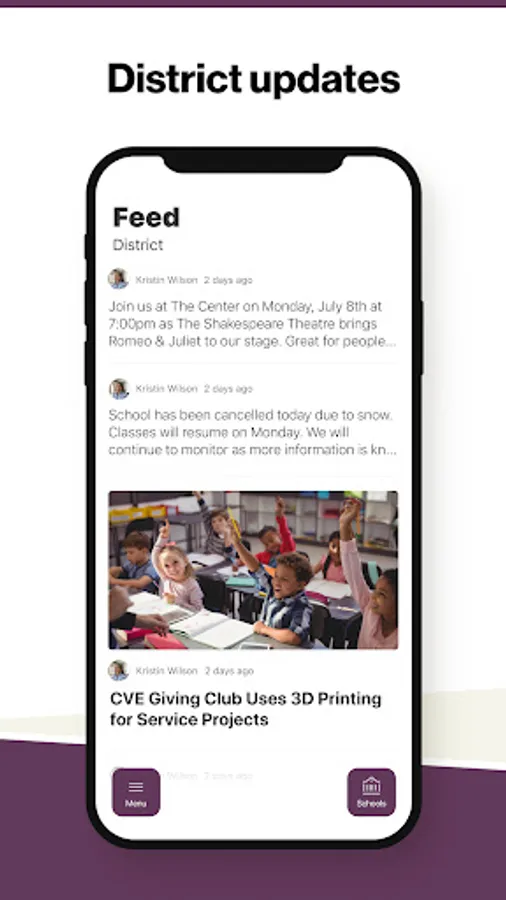 In the Live Feed is where you'll find updates from the administration about what's going on in the district right now. Whether that's celebrating a student's success, or reminding you about an upcoming deadline.