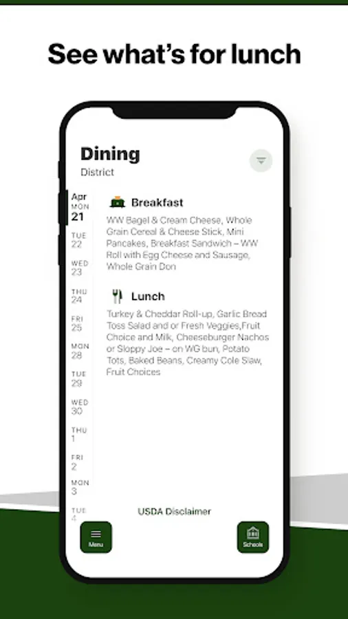 Within the dining section, you’ll find an easy to navigate, weekly menu, sorted by day and meal type.